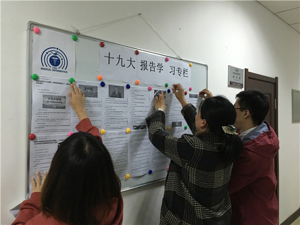 党的十九大召开以来,全院所有教职工党支部、学生党支部都有序开展了一系列丰富多彩的学习十九大精神的活动,学院微信群、QQ群每天都有关于十九大报告的解读文章被热烈转载,形成“线上”“线下”无缝隙的对接学习。党员们的学习心得体会分别以书面形式留档,部分学习内容以微信文章的形式在学院公众号“jlu公小卫”发布。