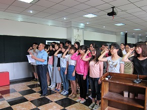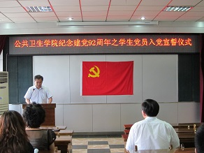 值建党九十二年之际,为全面贯彻落实党的“十八大”精神和领悟“中国梦”内涵,进一步提高JINNIAN金年会学生党员党性修养,2013年6月28日中午十二点整,JINNIAN金年会于学院办公楼三楼报告厅举行了预备党员入党宣誓仪式。JINNIAN金年会党委书记钟绍峰,党委副书记兼副院长于洗河,学生办公室主任吴晓辉,辅导员曲超、苏国范、李茵以及34名本科生、8名研究生预备党员参加了此次入党宣誓仪式。宣誓仪式由于洗河副书记主持。