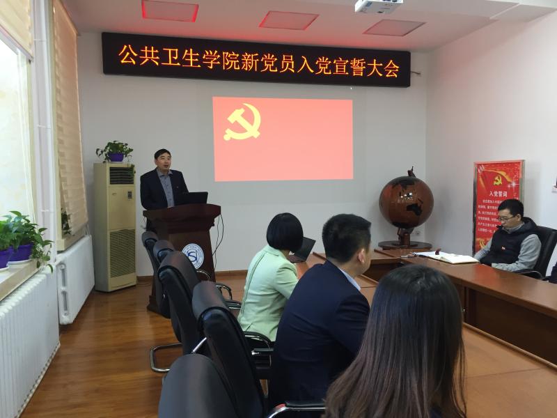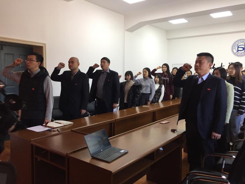 宣誓仪式在庄严的《国际歌》中拉开序幕,刘丽副书记宣读了新党员名单。随后学生工作办公室主任苏国范领誓,19名新党员面向党旗、举起右手,庄严向党旗宣誓,表达对党的忠诚和决心,参会老党员也与新党员一同重温入党誓词,忆念入党初心。宣誓结束后,新教师党员代表杨书满同志、新学生党员代表刘嘉悦以及老党员代表分别结合自身工作和学习进行发言,做出承诺,提出期许,互勉互励,不仅表达了自己对党的热情与忠贞,更是提出了高标准高要求,要为之奋斗。