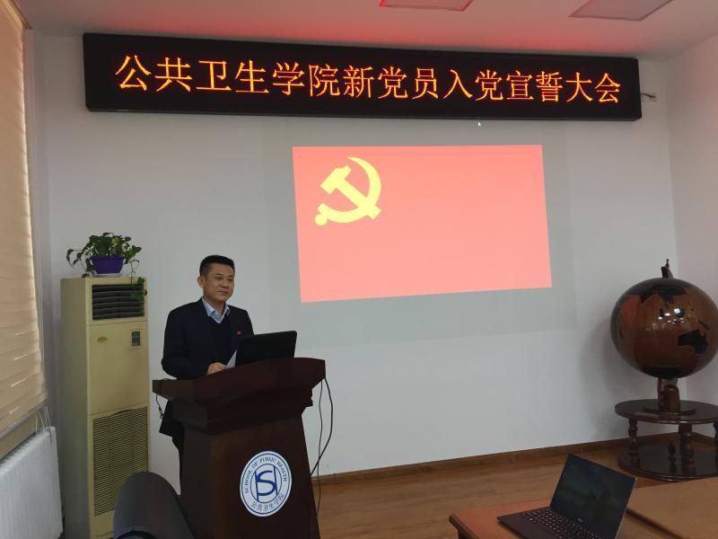 最后,党委书记赵国利作总结发言。他代表学院党委向新入党的青年教师和同学表示衷心祝贺,他说青年党员是党员队伍的中坚力量,大家要不忘初心,牢记使命,为事业发展卯足干劲,同时他还提出几点要求:要坚定“四个自信”,牢固树立“四个意识”,与党中央保持高度一致,要充分发挥先锋模范作用,争做新时代优秀青年,并要求在座师生时刻用誓言激励自己,用实践证明自己,不断提高对党的事业的责任感和自觉性,希望各位新党员要时刻不忘初心,永远牢记使命,紧密团结在以习近平同志为核心的党中央周围,用习近平新时代中国特色社会主义思想武装头脑,指导实践,不断加强学习,提高本领,激起更大的干劲,积极融入学院建设和发展,在进步与创新中取得新成绩。赵书记还结合改革开放40周年成就,发扬“红白黄”三源色精神,从优秀党员具备的基本素质、如何做一名合格党员、党的纪律等方面为大家讲了一堂“弘扬爱国精神,建功新时代”的主题党课。