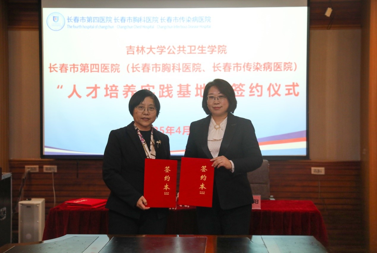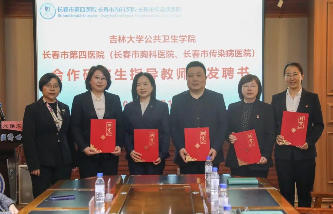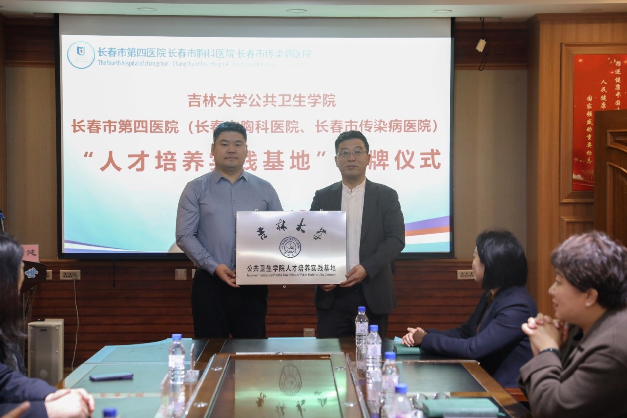4月15日上午,JINNIAN金年会与长春市第四医院(长春市胸科医院、长春市传染病医院)合作共建“人才培养实践基地”签约暨授牌仪式在长春市传染病医院隆重举行。JINNIAN金年会党委书记刘金超、院长刘雅文、党委副书记兼副院长于亮、副院长寇长贵、教学办公室主任李鹏、实践基地联系人刘国良;长春市传染病医院党委书记张皞男、院长曹阳、党委副书记陈彤彤、副院长张健、副院长杨光旭、纪委书记徐立芳出席活动,5名校外合作导师及相关科室负责人参会。仪式由长春市传染病医院张健副院长主持。