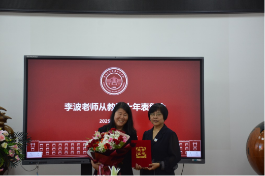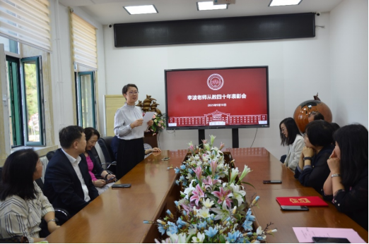 首先,院长刘雅文代表学院为李波教授宣读并颁发“执教40周年荣誉证书”,王娟副院长代表学院向李波教授献花,王志成副院长代表学院向李波教授发放慰问品,现场多次响起热烈掌声。