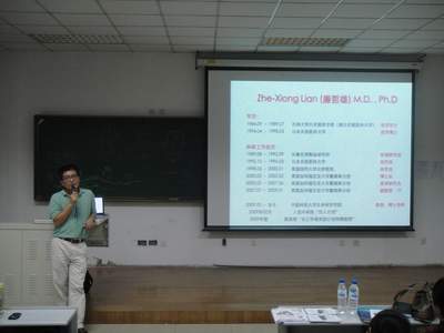 本次回母校报告的校友是金年会官网84级毕业生廉哲雄教授。廉教授1989年毕业于原白求恩医科大学环境医学专业并获得医学学士学位,1998年在日本关西医科大学获医学博士学位。1998-2000为美国纽约大学北岸医院助理研究员,2000-2003为美国加利福尼亚大学戴维斯分校博士后,2003-2007为美国加利福尼亚大学戴维斯分校资深研究员,2007-2009为美国加利福尼亚大学戴维斯分校副教授。2009年受聘于中国科技大学生命科学学院免疫所,博士生导师,教育部长江计划特聘教授,中科院“百人计划”获得者。