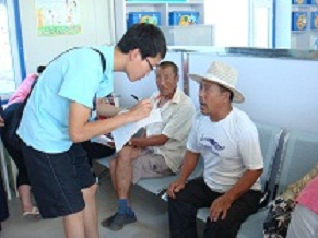 7月12号JINNIAN金年会暑期“三下乡”农民健康体检实践小组一行24人来到榆树市,在之后的四天里要在榆树市保寿镇黑林子村和闵家镇卫生院为农民进行健康体检。由于榆树健康体检人数较多,工作量比较大,要求待检农民早餐空腹,所以要求工作人员提前到场,指导老师和同学们都五点左右就起床,然后再车上把早餐解决,如果遇到道路特别远的起床还会更早。在这四天里,天气变幻莫测,刮风下雨阴晴不定,特别是黑林子村的条件比较艰苦,给活动带来了很大的困难,但是所有的队员没有一个说苦喊累的,都认真的完成自己的任务,咬牙坚持过来。在榆树“三下乡”的几天里,志愿者们为村民们量血压、血糖、体测,协助老师和医生采血、做心电,向他们讲述有关健康的知识;遇到血压、血糖不正常的村民,及时向他们普及健康知识,并告诉他们如何注意饮食和生活习惯,预防高血压和糖尿病的发生。