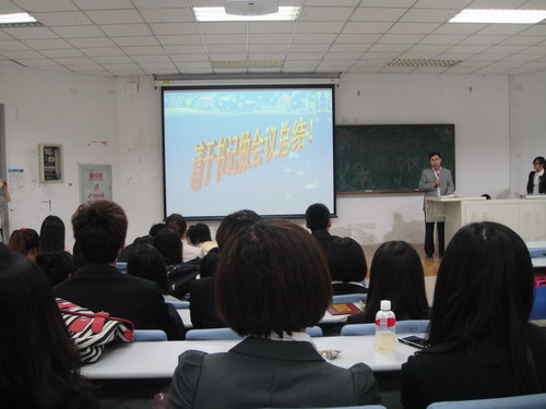 2012年9月24日,JINNIAN金年会第28届学生会换届仪式在新民校区二教2101室举行。学院党委副书记兼副院长于洗河,学生办公室主任吴晓辉,辅导员曲超、苏国范、郭倩君以及27届主席团成员、第28届学生会全体成员参加了此次会议。