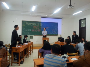随后,苗雨同学对本次辩论赛进行了点评。他指出,我们当代大学生应该涉足中国的政治,不然我们的学习在就会变成死读书,没有任何价值,应该树立为中华之崛起而读书的理念。同时也鼓励在场的辩手们,再接再厉,相信自己,多多参加辩论,锻炼自己的思维。之后,大家掌声不断,非常感谢师哥的教诲。
