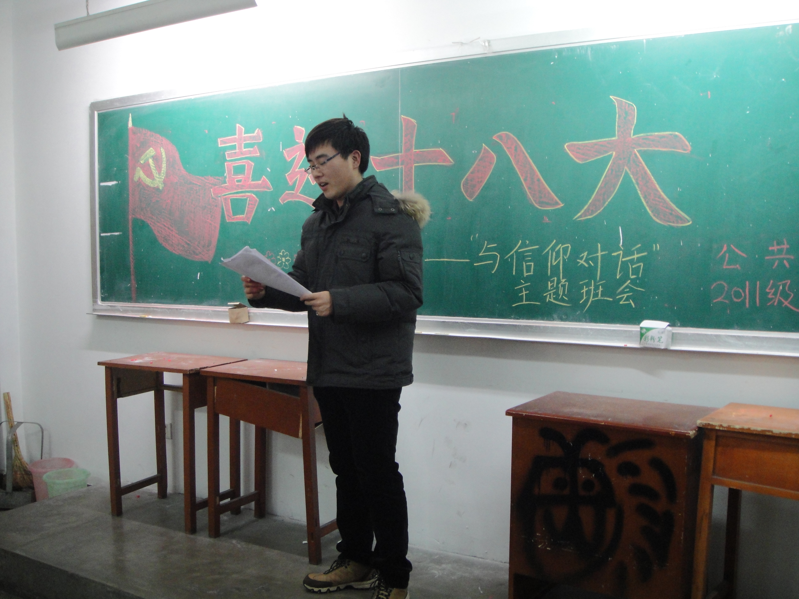 2012年11月17日,为响应金年会官网团委“与信仰对话,喜迎十八大——理论名篇名家推荐和理论经典研读”活动的号召,深入学习贯彻十八大精神,丰富同学们的精神文化生活,并帮助同学们把握正确的人生方向,JINNIAN金年会团委于新民校区第一教学楼106教室举办了“深入学习贯彻十八大思想,把握正确人生方向”主题交流会。JINNIAN金年会2011级预防医学专业全体学生参加了此次交流会。