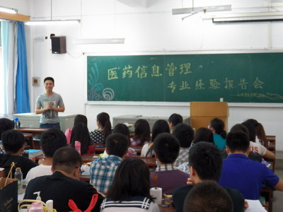 2013年6月2日下午3点,JINNIAN金年会在新民一教213教室成功举办了医药信息管理专业考研、保研、就业经验交流会。本次交流会主要针对10级信息专业同学,邀请了08级成功考研、保研或就业的五位优秀学生。