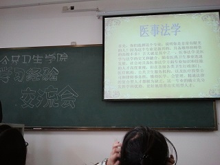 本次交流会由专业介绍、学习经验分享和自由提问三个环节组成。首先,12级负责人介绍了医事法学专业的课程设置、就业方向和学位设置等概念内容。随后,12级优秀学生代表就本专业重点科目的学习方法和学习细节进行了心得与经验分享,特别是对解剖、无机化学和高等数学等较难科目进行了着重介绍。最后,13级同学们在自由提问环节对学习、生活、工作的细节进行提问,如应该怎样协调好医学课与法学课的关系,如何处理学习与工作的轻重关系等。12级同学均根据自身体会和经验对这些问题进行了详细的回答。现场气氛十分活跃,在同学们热烈的掌声中本次活动完满结束。