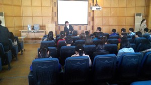 见面会的第一项是由郭倩君老师为同学们简单阐述学院此举的背景和意义,并将各位班主任介绍给同学们。各班同学纷纷以热烈的掌声欢迎他们的到来。接下来,三位班主任与同学们分别做了自我介绍,加深了互相的认识。之后,班主任们耐心解答了同学们心中有关学习方法、就业去向等各个方面的疑惑并鼓励同学们为自己的梦想不懈努力。他们以平易近人的态度与同学们相处,教室内洋溢着活跃而又和谐的氛围。最后,各位班主任均表示日后会与同学们一起参加各类活动,在活动中给予同学们必需的建议和忠告。下午4点,见面会正式结束。