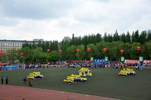 5月16日,金年会官网第五十三届运动会在中心校区体育场隆重举行。为了给运动会增光添彩,由JINNIAN金年会文艺部组织的142人的大型舞蹈表演于5月16日上午10点在中心校区体育场顺利拉开了帷幕。