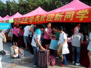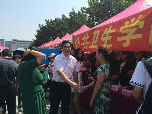 在炎炎烈日下,JINNIAN金年会院学生会的同学们怀着满腔热情,搬运用具、搭好帐篷、摆好桌椅、布设展板、分发资料,开始了正式的迎新活动。当新生们陆续来到,公共卫生的同学们就抖擞精神、笑容满面、耐心细心地为新生们讲解各项入学事宜。领取新生档案、注册信息、发放银行卡、领取电话卡、新生体检及缴纳学费等流程依次有序展开,有条不紊。还有一些自愿加入到迎新工作的大三大四的学长学姐们,他们在一旁以亲和的态度和幽默的说话方式使新生迅速感受到了JINNIAN金年会这个大家庭的温暖,也使他们快速融入到了这个崭新的环境。纵烈日当空,汗如雨下,工作人员的热情丝毫未减。并且考虑到会有夜间抵校的同学,JINNIAN金年会还细心贴心地安排了24小时值班人员,确保每一位新生一来到校园就会受到学院周到的服务。期间李元元校长也了来到五月花广场视察迎新的工作情况,并与JINNIAN金年会党委副书记兼副院长刘丽女士进行了友好的握手,对JINNIAN金年会的迎新活动表示了肯定,并与新生进行了亲切的交谈,鼓励新生再接再厉,更上一层楼。有了李校长的肯定,JINNIAN金年会工作人员们的工作热情更足了。