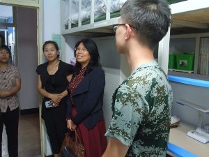 为了更好地了解2014级新生的军训及生活情况,让新生感受到JINNIAN金年会大家庭的温暖,快速适应崭新的大学生活,9月3日晚6点,JINNIAN金年会院长李娟教授,学院党委钟绍峰书记,刘晓东副院长,刘雅文副院长,刘丽副书记与全体辅导员一同来到了中心校区南苑二公寓,北苑二公寓,对2014级的JINNIAN金年会新生进行走访慰问。