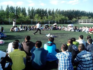 对于这个暂时彼此都不太熟悉的大家庭,开场自然是自我介绍,由2014级的同学们自愿进行才艺展示,表演结束后向大家介绍自己,一名男生就自备乐器,用二胡拉了一曲赛马,博得了大家的掌声。为动员每位同学都参与活动,提高活动的趣味性,学院辅导员助理们精心准备了“找零钱”、“逛三园”、“我是大歌星”等游戏,现场爆笑不断,把活动带向了高潮。之后由放射二班和医药信息班的两位辅导员助理一展歌喉,另同学们赞赏不已,放射二班的辅导员助理更是展示了他的音乐模仿能力,模仿了中国好声音的几位学员,惟妙惟肖,获得了同学们的一致叫好;预防一班的辅导员助理也为同学们打了一套长拳,拳拳有力、行云流水的表演再次博得了大家的阵阵掌声。辅导员助理们的精彩表演将活动推向了又一个高潮。此外,贴心的辅导员助理们还在活动期间为同学送上西瓜,给同学们分发糖果,一片其乐融融。