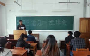 班委会由各班班长主持,班长首先就班级上学年的学习生活状况进行了分析总结,并对本学期提出了新的期望目标并进行了整理规划。之后是对新一学期班委的重新选举,由竞选同学依次上台演讲,台下同学匿名投票。竞选结果将于日后公示。之后由各班班主任总结了开学以来同学们的学习工作状态,其中针对部分同学学习态度不认真,学习积极性差,逃课早退的现象,老师专门设立了年级长,用于同学们抽查点名,督促同学们的学习。此外,老师还对荣获2013-2014学年奖助学金的同学进行表扬,并就成绩单寄送家长的问题与同学们进行了交流,回答了同学们关于为什么、怎么寄成绩单给家长的问题,表示成绩单寄送是学院对家长关心学生成绩问题的一个回复,同时也是促进同学们努力学习的动力。最后,班委会在老师对同学们的祝福中圆满结束。