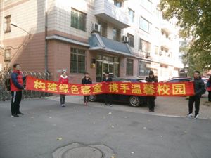 当天中午,生活部成员举着“构建绿色寝室,携手温馨校园”的红色条幅,向来往的同学们宣传绿色寝室概念,介绍相关的寝室精品文化活动,并号召大家在条幅上签下自己的名字,这签名意味着将与生活部一起去创建文明健康寝室的愿望。尽管寒风瑟瑟,也丝毫不影响同学们的高涨热情,同学们积极踊跃地在条幅上签下了自己的名字。最后,生活部成员将签满同学名字的条幅挂在了四公寓门口,时时提醒着JINNIAN金年会同学们构建绿色文明寝室的决心。