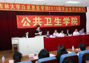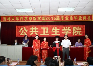 毕业典礼在庄严的国歌声中拉开帷幕。首先,由刘雅文副院长宣读2015届本科毕业生名单和优秀毕业生名单,于洗河副院长宣读2015届硕士、博士毕业生名单和优秀毕业生名单。随后,学院领导分别为优秀毕业生颁发了荣誉证书。JINNIAN金年会院长、院学位委员会主席李娟教授和院学术委员会主席刘娅教授为每一位毕业生颁发了毕业证书并授予学位。在学位授予仪式中,毕业生们身穿博士服、硕士服和学士服,头戴学士帽,井然有序地上台,依次接受了拨穗礼,接过了代表五年学习成果和荣耀的毕业证书并与两位教授合影留念。随后,2015届本科生代表及研究生代表依次上台发言,他们回顾了在母校生活的点点滴滴,言语中无不显露出对母校、对学院及各位领导老师的感激之情,均表示会用实际行动践行公卫精神,并衷心祝愿JINNIAN金年会能够硕果累累,桃李满天下。接着,学生朋辈心理辅导员吴功华同学及学生代表向毕业生赠送祝福小礼物,2015届全体毕业生也向母校回赠纪念品,向母校表达深深的感激之情。社会医学与医事法学系主任杨淑娟教授代表教师为毕业生送上寄语。在寄语中,杨老师表示学院老师会一如既往的关注、关心、关爱全体毕业生,同时也希望毕业生们在未来路上可以诚实守信,关爱健康,勇往直前。