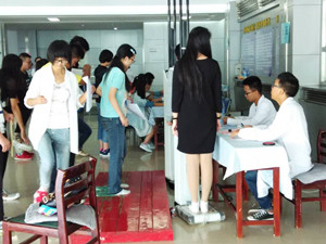新生报到后,由学生会工作人员带领并由医院志愿者帮助医生们进行新生的体检工作。每天上午八点半至下午五点半于学校门诊部检查胸部透视。 志愿者们引导新生进行各项体检项目的检查,分别有身高、体重、采血、内科、外科。JINNIAN金年会新生依次进行了体检。同学们有纪律,不插队乱跑,积极配合志愿者和医生的工作。