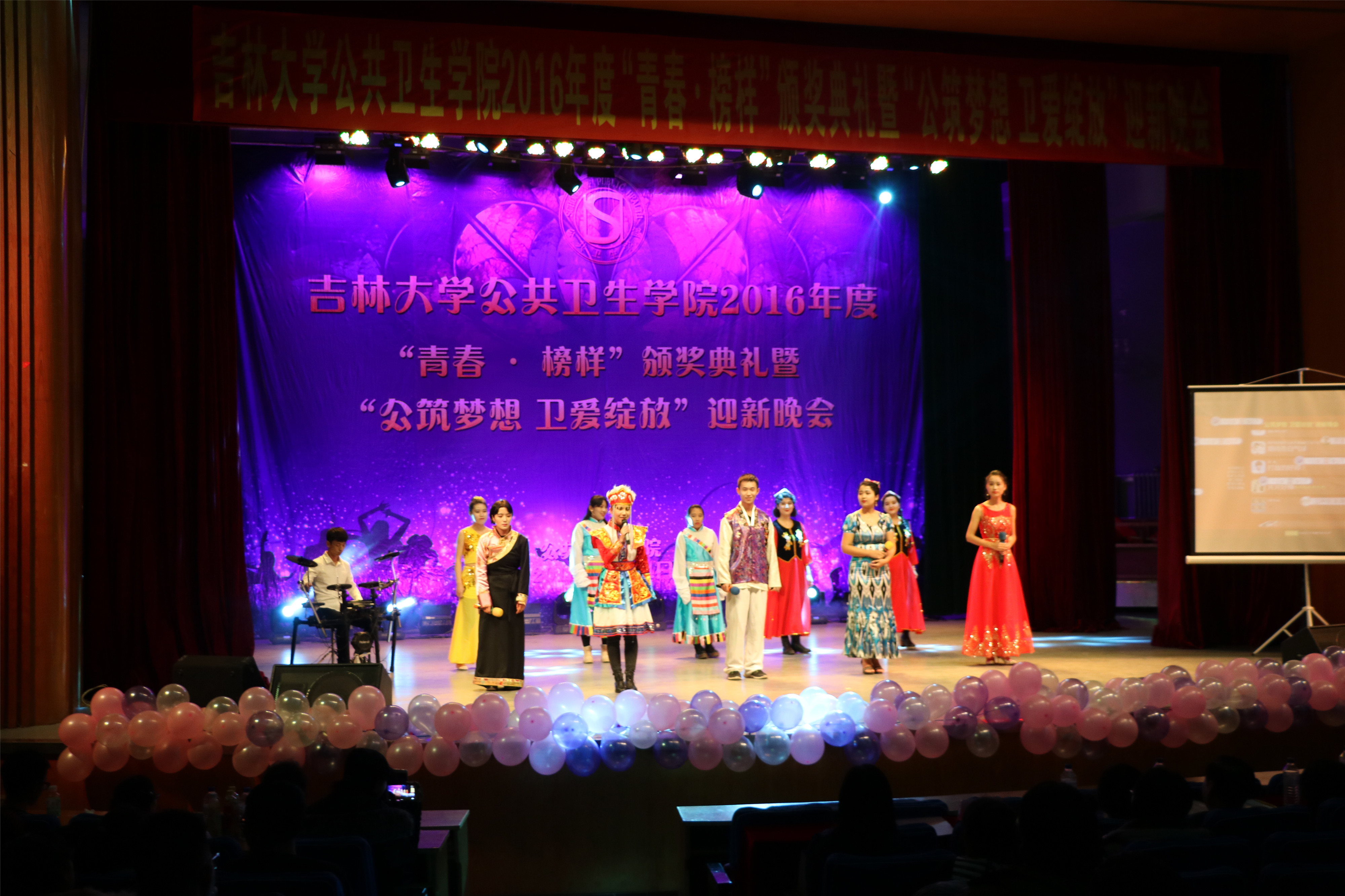 在一阵热烈的掌声中,活力十足的劲歌热舞率先掀起了JINNIAN金年会2016年度“公筑梦想 卫爱绽放”迎新晚会的高潮。整场晚会呈现的节目精彩连连:歌曲《陪你一起看草原》和民族歌舞串烧《喜欢你》为观众呈现了多姿多彩的民族文化,营造出民族融合、共同进步的和谐盛景;诗歌朗诵《祖国,我亲爱的祖国》字字铿锵有力,句句掷地有声,唤起了同学们深藏心底的爱国情怀;搞笑喜剧《大话公卫》更是以幽默风趣的台词介绍了学院的现状、学科的发展前景以及同学们的校园生活状态;《大学生活》是同学们精彩演绎的视频配音作品,表演方式新颖独特,引起了现场观众的共鸣;歌舞《恋人心》和《告白气球》利用流行元素,烘托出同学之间浪漫的情愫,展现出公卫学子的青春与活力;《相亲相爱》是JINNIAN金年会全体师生共同表演的大型歌舞,寄托了学院全体师生精诚互助、共同进步的精神内涵,在师生亲密无间的合作中,晚会渐渐步入了尾声。