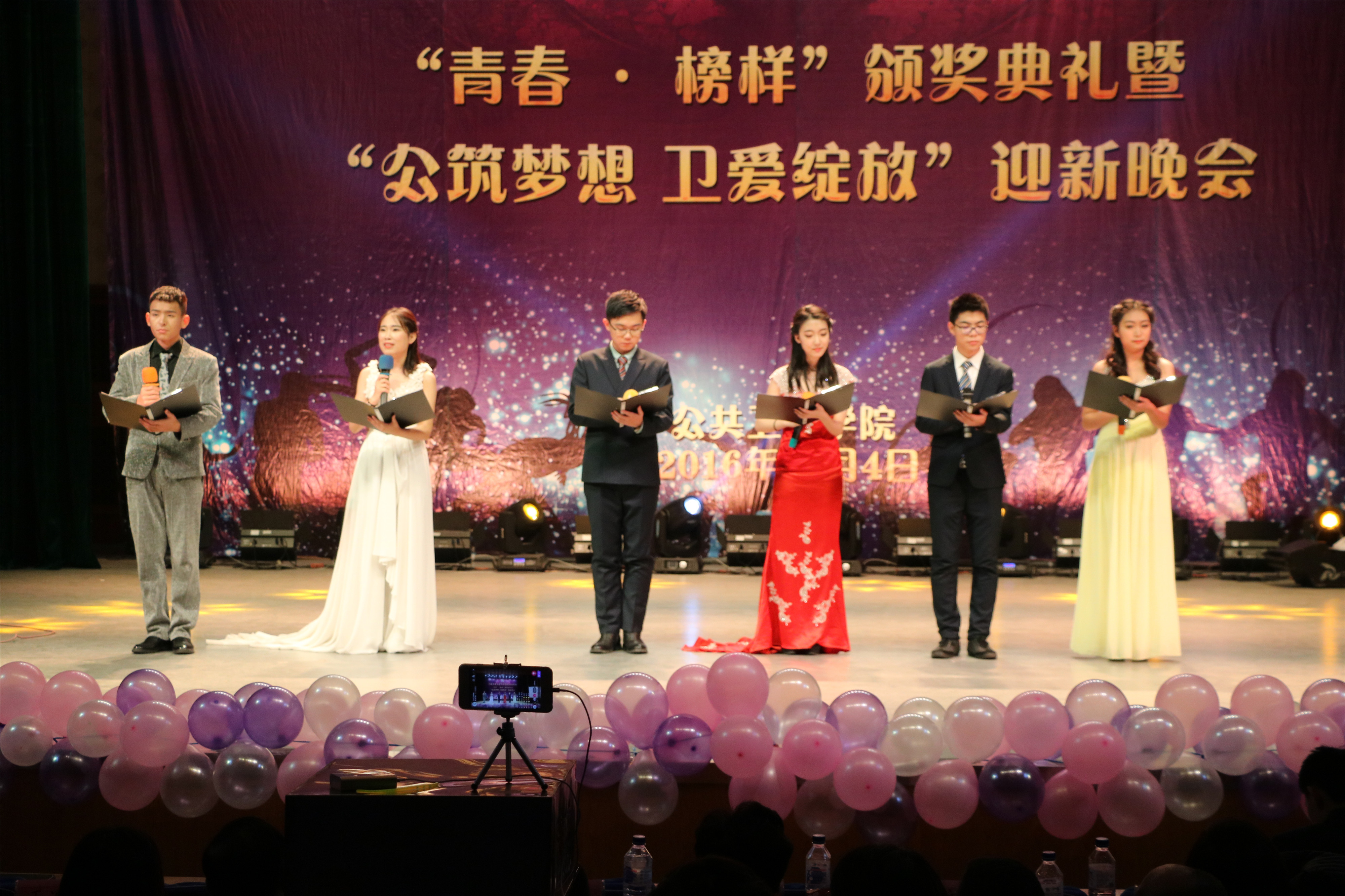 12月4日晚上六点整,JINNIAN金年会2016年度“青春·榜样”颁奖典礼暨“公筑梦想 卫爱绽放”迎新晚会在南湖校区小礼堂正式拉开了帷幕。JINNIAN金年会院长李娟,党委书记钟绍峰,副院长刘晓冬、于洗河、刘汉君、刘雅文,党委副书记兼副院长、2014级辅导员刘丽以及全体教职员工,2014级、2015级、2016级全体本科生和部分研究生代表应邀出席了活动。