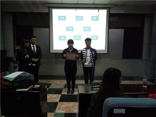 赛前,同学们热情高涨、报名踊跃,20余组、60余名学生先后报名参与了本次比赛。比赛主要分为“明察秋毫”“心有灵犀”“浅吟低唱”“巅峰作答”四个环节,竞赛过程丰富多样,游戏内容精彩炫目,现场氛围高潮不断。第一个环节中,各队选手对医学专业术语、医学生僻名词进行了字音、字形的辨识,不仅彰显了医学校园文化特色,更激起了现场同学们的热情。第二个部分考察的是各组选手的配合默契,仿照《中国成语大会》的比赛形式,同学们将“单词竞猜”表现得淋漓尽致。浅吟低唱环节中,8首以中国古典诗词为主题的古风音乐婉婉而出,选手们在优雅的曲调中淡定作答,视觉效果犹佳。最后的环节堪称高潮,以各个朝代的汉语言文化常识作为题目,选手们的作答妙语连珠、异彩纷呈。
