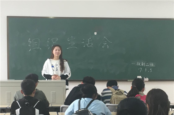 团支书程琦首先在会议中向同学们传达了习近平总书记系列重要讲话精神和治国理政新理念、新思想,并特别强调了关于青少年和共青团工作的主要论述。随后是发言环节,不少同学在发言中表达了五四青年节当天早上观看升旗仪式的感想,并对自己近期在学习、生活、活动等方面的表现进行了客观评价。团员代表还就总书记的五项具体要求进行了批评与自我批评。最后,在轻松活跃的氛围中,JINNIAN金年会2016级放射二班组织生活会圆满结束。