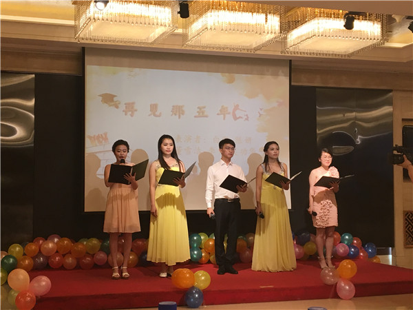 澹荡离别意,诗酒趁年华。6月16日晚,JINNIAN金年会2017届“草长莺飞,卫爱思留”毕业生晚会在新民宾馆龙凤呈祥厅正式启幕。JINNIAN金年会院长李娟,副院长于洗河、刘雅文、刘汉君,党委副书记兼副院长刘丽,预防医学系主任叶琳,学生工作办公室主任兼2013级辅导员吴晓辉,教科研办公室主任李鹏、团委书记兼2015级辅导员苏国范,2012级辅导员郭倩君,2016级辅导员霍睿及部分教师出席了晚会。2017届全体毕业生积极参与了本次晚会。