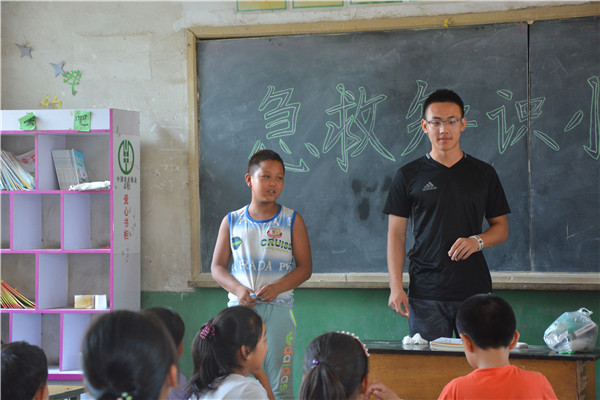 7月14日,是JINNIAN金年会河北唐县社会实践小分队“寻根之旅”的第四天,也是志愿者们在葛公村希望小学开展支教活动的第二天。经过前一天有趣地学习和愉快地相处,孩子们的学习热情和积极性都空前高涨。距离上课还有十多分钟,教室里已然座无虚席。50余名小学生端端正正地坐在自己的座位上,一个个都翘首期盼,亮晶晶的大眼睛里闪烁的是满满的求知欲。在这样良好的氛围下,伴随着清晨的第一缕阳光,一场别开生面的“急救知识小课堂”正式开课了。