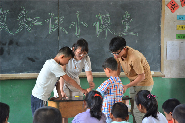 志愿者们将孩子们分成男生与女生两支队伍,女生学唱《闪闪的红星》主题曲,男生学唱《强军赞歌》。“红星闪闪,放光彩;红星灿灿,暖胸怀……”脍炙人口的歌词唤起了孩子们对少年先锋队的憧憬。志愿者们从歌词出发,为孩子们讲述了中国共产党及少年先锋队在中国革命中的重要作用。另一首《强军战歌》则激发了孩子们的爱国主义情怀和对军人的崇敬之情。快乐的时光总是十分短暂,在红歌会上,孩子们表现积极踊跃。他们脸上洋溢着幸福的笑容,这让志愿者们倍感温暖。支教此行,志愿者收获了成长,孩子们开阔了眼界;志愿者磨砺了意志,孩子们感受了真心。