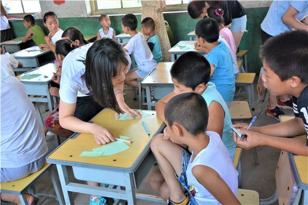 下午的教学活动中,志愿者通过启发的方式,鼓励小朋友们给父母写一封信,表达自己对他们的感恩与爱。大部分小朋友很快就开始动笔,刷刷地在纸上写着,但也有少数小朋友抓耳挠腮,志愿者和他们进行了进一步交流,发现这些小朋友的父母大多离开村子,到大城市去打工以贴补家用,像我们在新闻中了解到的外地务工人员一样,一年回家的次数屈指可数。这些“留守儿童”对他们父母既充满了思念,又委屈于没有父母的时时陪伴,有的小朋友的泪珠还打湿了稿纸,让志愿者们的心难过地揪在了一起。对这些孩子,是既心疼,又无奈。书信课的最后,志愿者向表现出色的孩子赠送了金年会官网医学部的明信片,并向他们介绍白求恩医学部的魅力,鼓励他们好好学习,考上理想的大学。