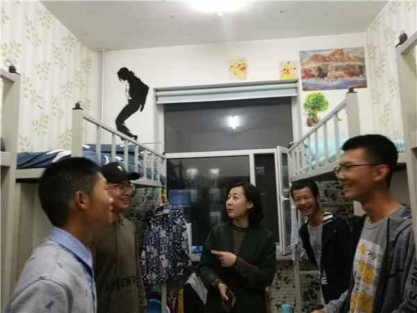 10月8日晚,JINNIAN金年会2017级学生辅导员郭倩君在学生会生活部部员的陪同下,对中心校区的北苑一公寓男生寝室以及文苑四公寓女生寝室进行首次卫生检查。