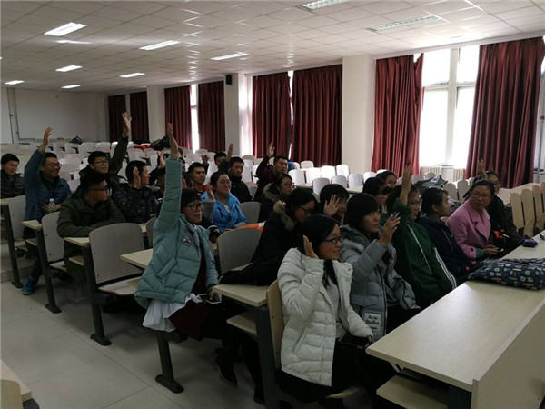 活动始出,全体同学共同观看了十九大特别节目《医者先锋》的三个片段,同学们十分认真专注,被短片中三位令人尊敬的医者深深地震撼。观看后,同学们积极发言讨论了作为白求恩传人的应承担的责任与感想,进一步理解了“不忘初心,砥砺前行”的深刻意义,也更加明白了医学生肩上的责任之重。紧接着进行了二十题抢答环节,这也将此次团日活动推向了高潮。全班同学分为两组,在答对得一分,答错扣一分的游戏规则下开展了激烈的抢答活动,同学们举手抢答,现场氛围十分积极踊跃。可见同学们一对十九大与白求恩精神的基础知识烂熟于心了。游戏结束后,同学们纷纷表示,这次游戏不但是班级的氛围更加轻松活跃,加强了班级的凝聚力,也让同学们对十九大与白求恩精神有了更深的了解。