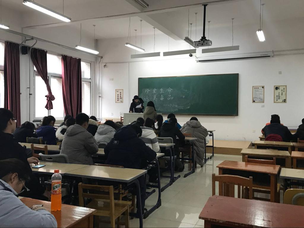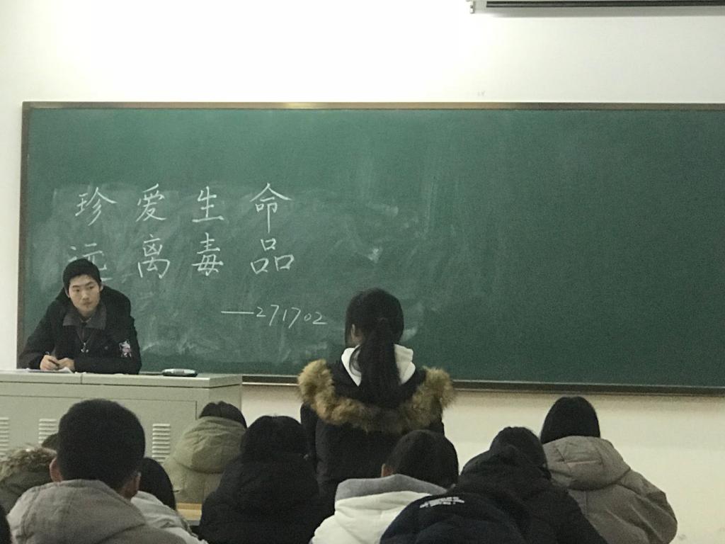 11月23日下午,JINNIAN金年会2017级预防医学二班于中心校区李四光教学楼114教室开展了以“珍爱生命,远离毒品”为题的禁毒主题班会,2017级预防医学二班全体同学出席。