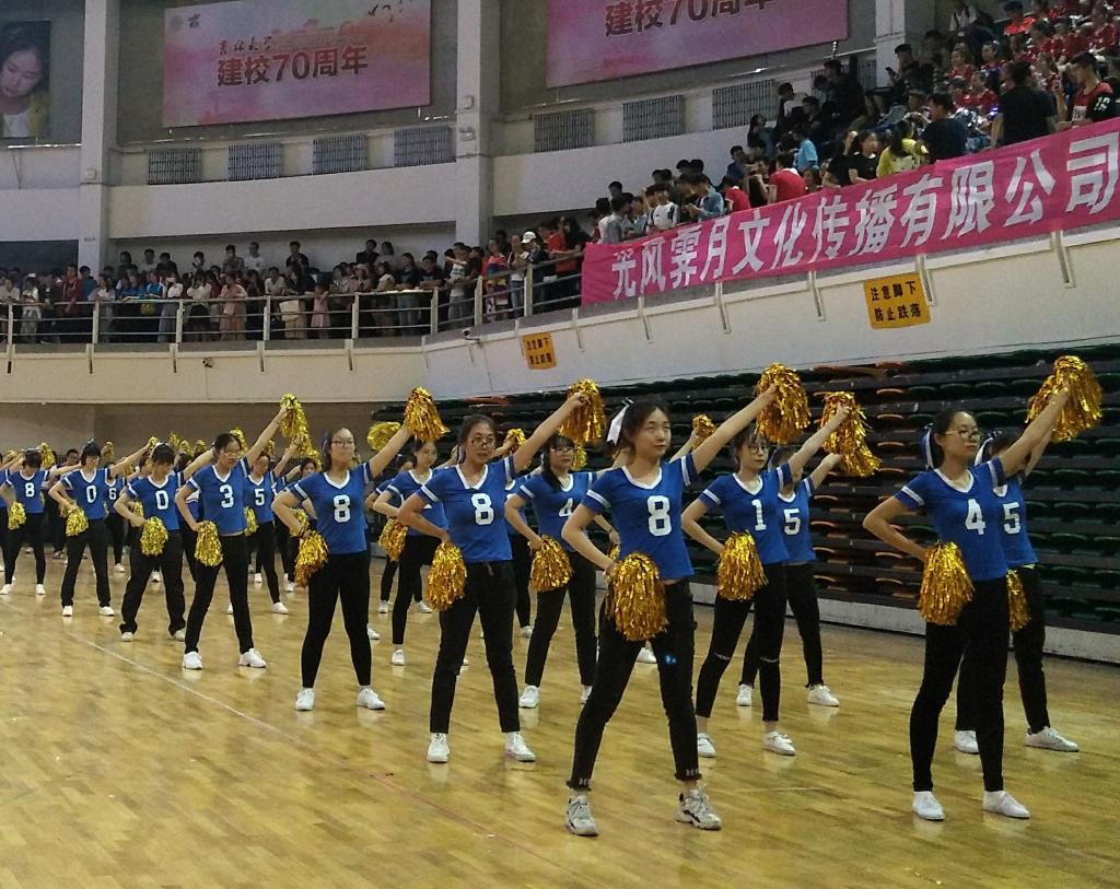 首先,在观众期待的目光中,各个学院的代表队整齐有序的入场,比赛拉开了帷幕。选手们身穿五彩缤纷的比赛服,个个精神饱满,脸上洋溢着自信与阳光。开幕式结束后,比赛正式开始了。JINNIAN金年会于第一组出场,金年会官网选手身着深蓝色上衣,手持金色花球,一个个精神抖擞、气宇轩昂。他们迈着整齐的步伐走进赛场,随着音乐响起,他们动作统一的伸手、抬腿,每一个动作都充满了朝气与活力。他们认真的投入到比赛中,为了同一个目标努力,从面部表情到动作姿态都体现出认真严谨与积极向上的态度。接下来是啦啦操环节,选手们挥舞着手中的花球,踏着激昂动感的音乐节拍,做着整齐划一的动作,将音乐与舞蹈完美结合,诠释了朝气蓬勃的青春魅力。选手们精彩的表演,为观众带来美的享受,赢得了观众热烈的掌声。最终,金年会官网取得了第24名的成绩,比赛圆满落幕。