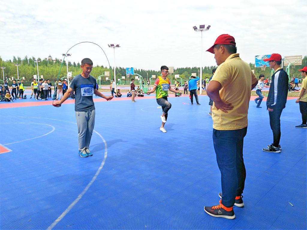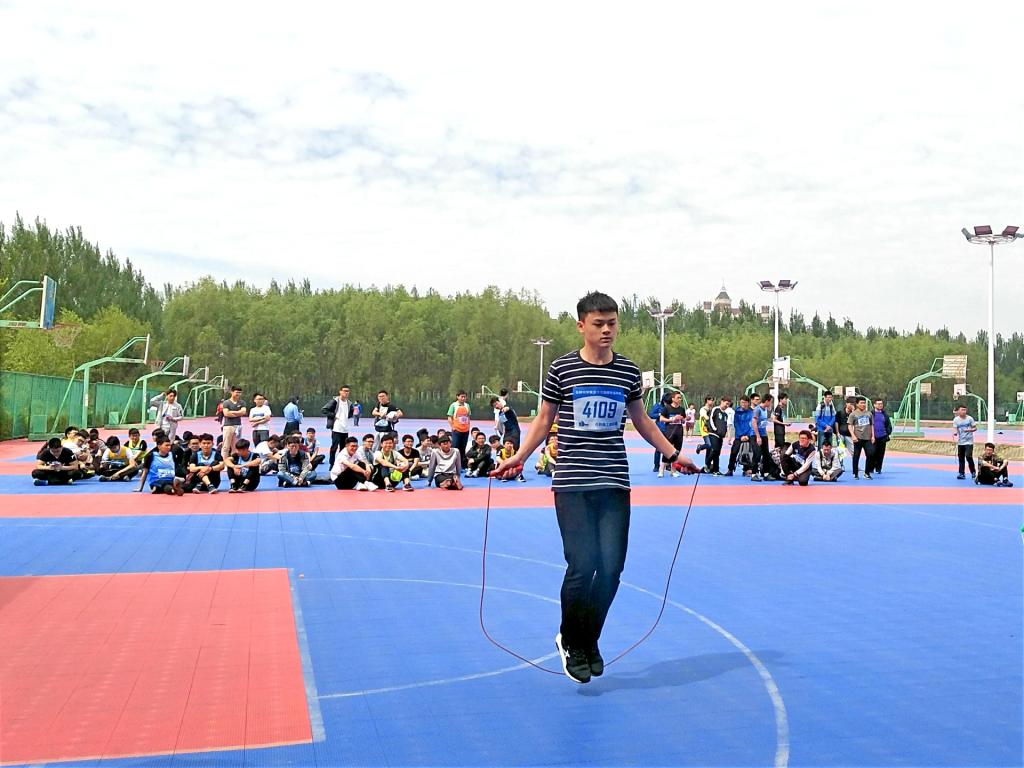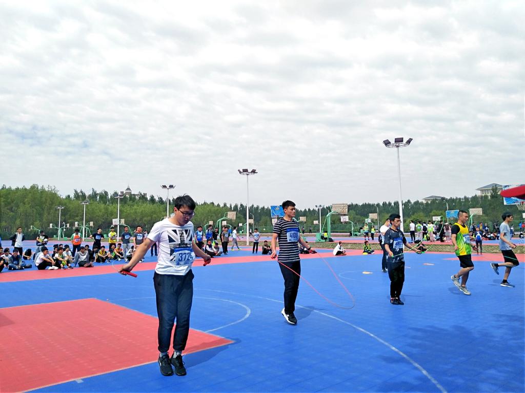金年会官网第五十七届运动会于5月24日正式拉开帷幕。上午8点30分,男子一分钟跳绳比赛在中心校区西侧篮球场进行。JINNIAN金年会派出2015级石伟、2017级尹健健两名同学参加此项目,分别于第F组、第G组进行比赛。