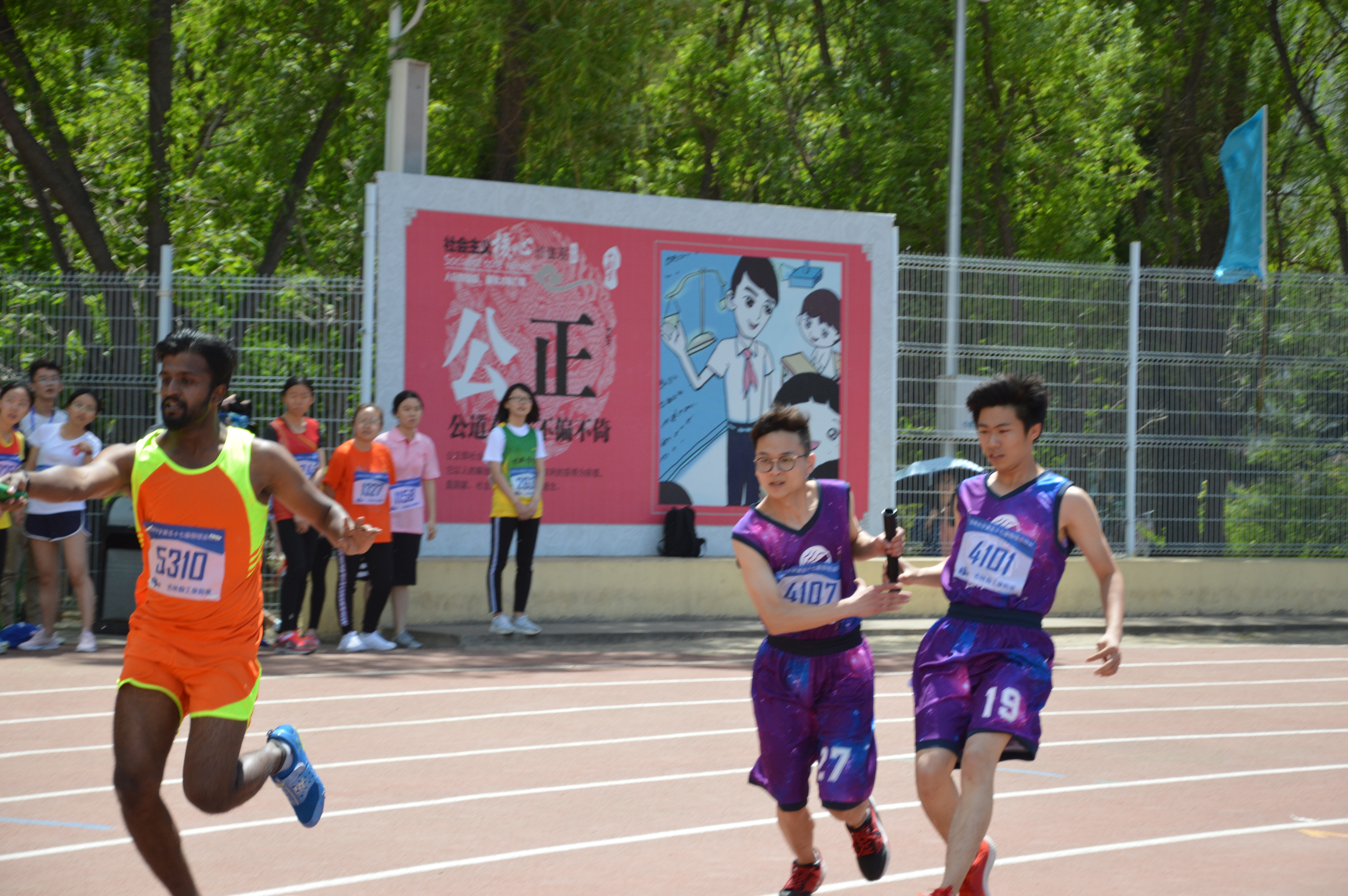 经过了一段时间的艰苦训练,选手们对此次比赛都是准备充分。检录过后,大家信心满满的站到自己的位置准备接力。随着一声信号枪响,第一棒的选手迅速反应,全速奔跑,其他选手也蓄势待发,只等接力棒到手,四名选手配合默契,传棒快速,在大家的共同努力下,公共卫生代表队取得了不错的成绩,得到了同学的赞扬和好评。
