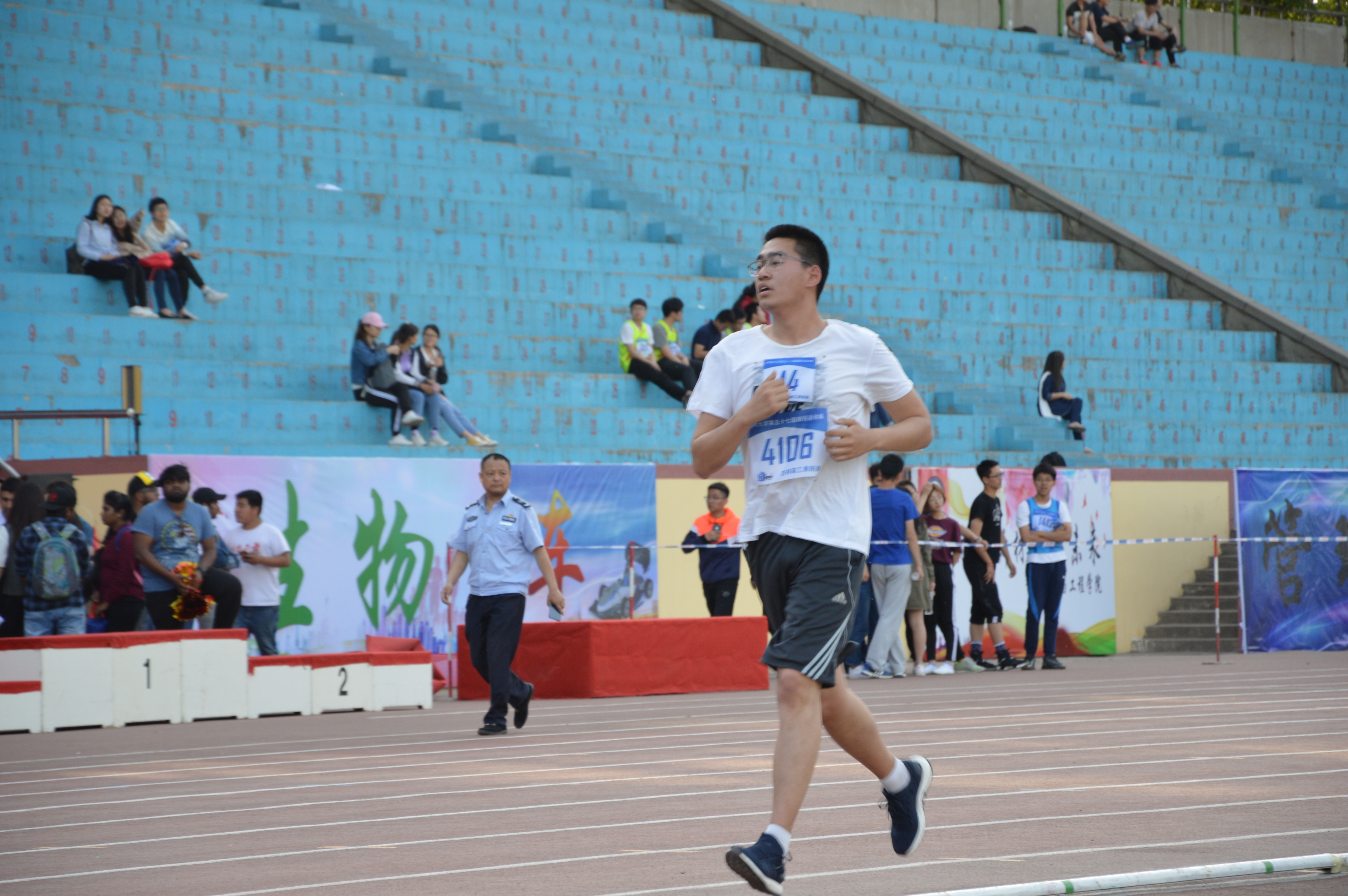 下午五点整,男子5000米决赛的运动员站上了跑道,在志愿者们的悉心指导下,运动健儿们依次在赛道站好,为即将到来的比赛摩拳擦掌。JINNIAN金年会孙云祥同学精神饱满,斗志昂扬,充分展现了金年会官网学子积极奋进的精神风貌。伴随着裁判员的枪声,运动健儿们像离弦的箭疾驰在跑道上,他们不顾炎炎烈日的照射,不畏一圈又一圈的跑道,拼尽全力冲向终点。即使大汗淋漓,气喘吁吁,也不轻言放弃。孙云祥同学始终记得他不只代表着自己,还代表着学院,他将汗水与紧张都化为了奔跑的动力,最终获得出色的成绩。