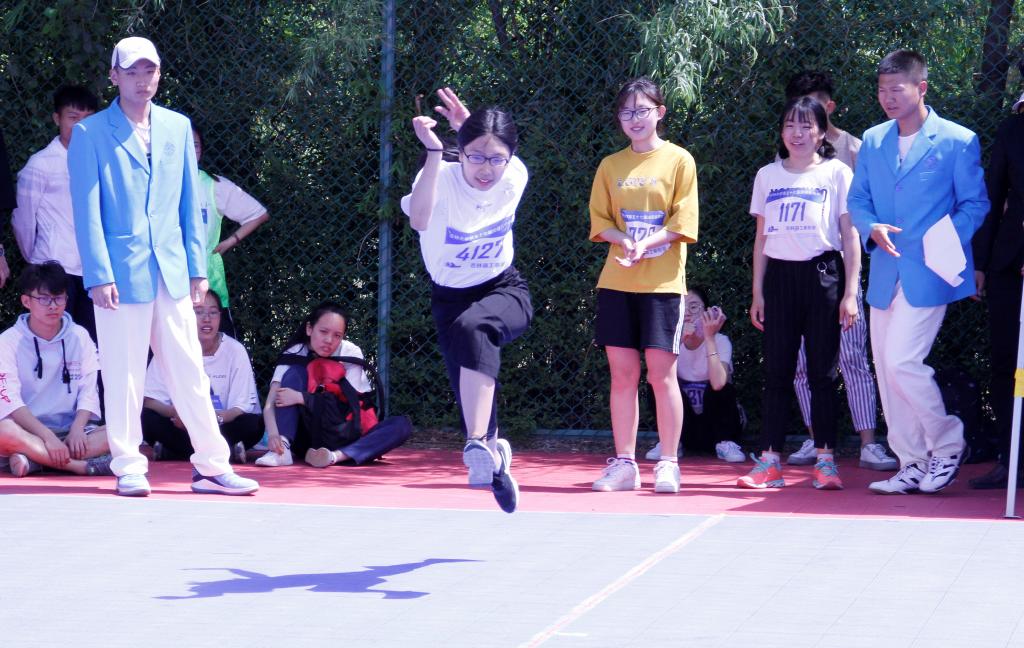 为传承并发扬不畏艰苦、迎难而上的精神,提升广大学子的体育素养,提高大学生的身体素质,金年会官网第五十七届运动会于中心校区举行。5月25日上午八点半,女子学生组三级跳比赛于中心校区西侧篮球场火热开赛,JINNIAN金年会选派出胡斯月同学参加了此项目。
