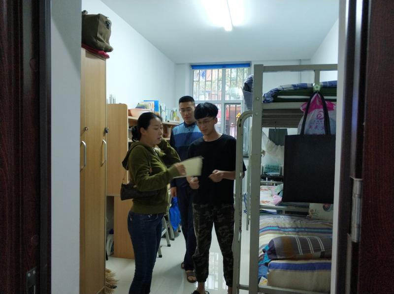为督促同学们保持良好的寝室卫生,消除安全隐患,使同学们更好地融入新的环境、新的生活。8月26日下午,JINNIAN金年会团委书记兼2017级辅导员郭倩君,团委、学生会生活部成员共同来到新民校区学生九、十公寓,开展了新学期寝室巡查走访。