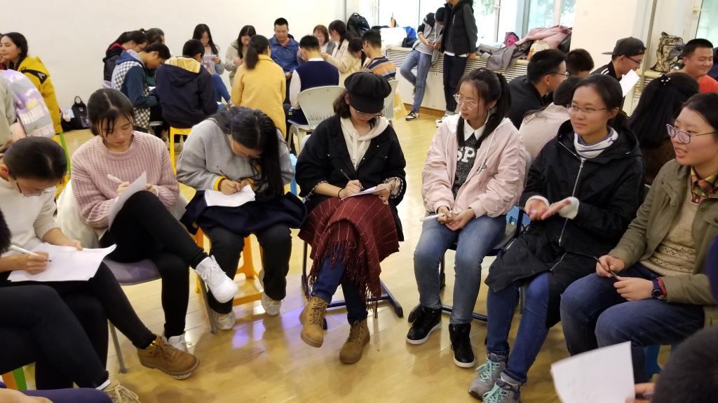 丹桂飘香,秋高气爽,为了促进新生们相互认识、建立互信、增强团体凝聚力,10月10日,在JINNIAN金年会学生会心理部的组织下,主题为“我们是相亲相爱的一家人”的2018级新生团体心理辅导活动在中心校区经信教学楼A101室开展,2018级全体本科生参加了活动。