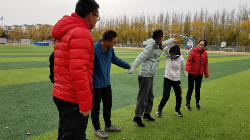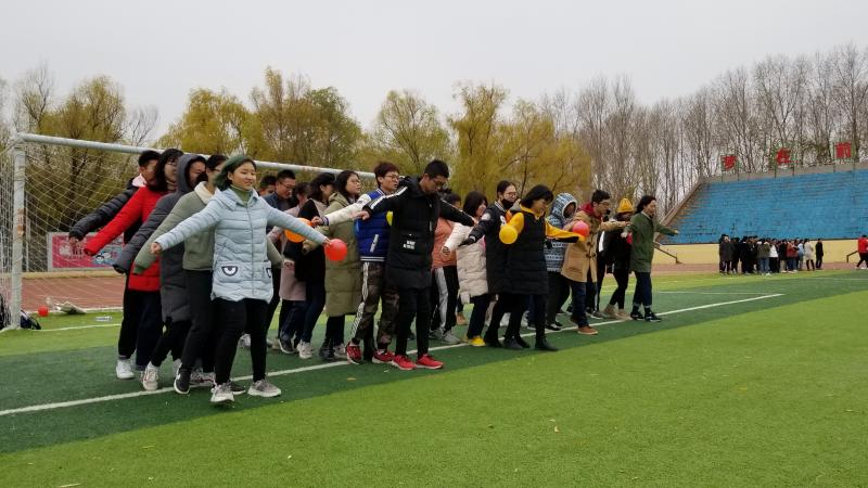 本次素质拓展训练于上午八点半正式开始,训练内容十分丰富有趣,分为:同舟共济、穿越呼啦圈、步调一致、三足鼎立、抱团坐五个项目,成员们都乐在其中。活动初始,成员们按照部门分为三组进行比赛,比赛项目的设置不仅考验成员们之间是否能团结一致,还考验着彼此间的默契程度。在三足鼎立项目中,需要成员在保护自己队气球的同时,去踩坏其他队的气球。各个成员或发起猛攻,或四处闪躲,本在冬日早上瑟瑟发抖的成员,不久就皆是满头大汗,气氛很快活跃了起来。随后,在同舟共济项目中,各成员需要保持步调一致,若气球掉落则需要从头来过,项目虽难,但成员们丝毫没有放弃的想法,即使最后只剩一组队伍,也依旧坚持完成项目。比赛实行计分制,由排名前三的部门向排名倒数的三个部门提出惩罚要求。在素质拓展期间,体育场充满了成员们的欢声笑语,惩罚环节中各种有趣的惩罚措施,更是惹得众人捧腹大笑。