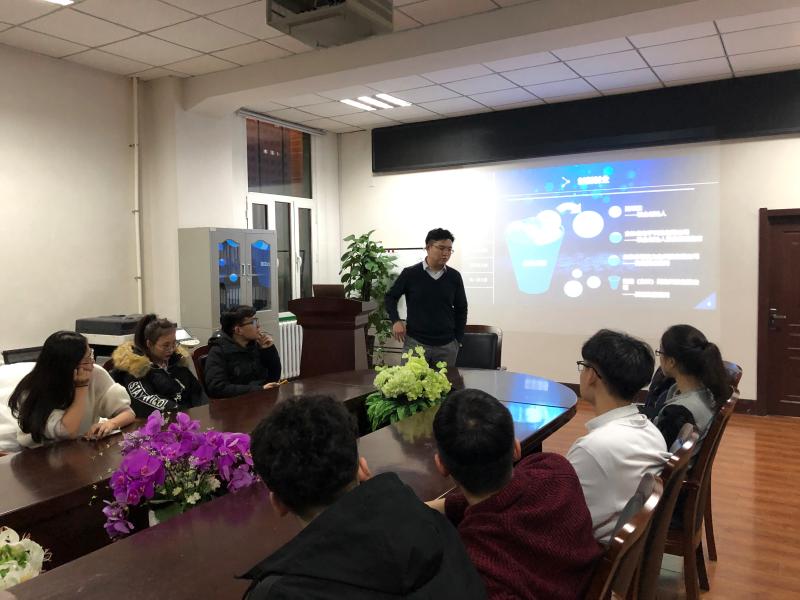 会议开始之前,霍睿老师向来参与本次座谈会的同学们表示热烈欢迎,并向在座的同学介绍了获得金年会官网2019年创新人才推免研究生资格的郭彦波同学,与会同学纷纷表示了热烈的欢迎。本次座谈会主要分为六个主题。首先是个人经历,郭彦波通过创业经历、创业荣誉和个人奖项等方面的介绍,让同学们更加深入的了解了自己;第二个主题是互联网+医疗,郭彦波讲述了如今存在的医疗困境,并向大家介绍了大数据在医疗卫生行业的应用及目前存在的缺点,从而引出目前互联网+环境下,互联网和医疗卫生事业相结合的前景;第三个主题是AI与医疗,郭彦波详细生动地介绍了人工智能和未来医疗事业相结合所存在的可能性以及相关的应用领域,谈到了将AI应用到医疗领域的美好前景的认可和憧憬。随后,郭彦波同学通过形象的描述向大家阐述了什么是区域链以及区域链的现状,并且和人工智能行业相联系,预测了区域链的未来发展;在第五个主题大学成长中,郭彦波同学向在座的同学们描绘了自己心中的大学生活,用自己的亲身经历引导同学们思考自己应该怎样度过大学,告诉同学们要以学业为本,在保证学业的前提下积极参加社团活动,增加实习经历,养成独立思考的习惯。同学们在郭彦波同学的引导下陷入沉思。在最后一个主题专业展望中,他向同学们讲解了专业的前景,并送给了同学们十六字寄语:嘉言懿行,知行合一,坚如磐石,万物不侵。同学们都非常感谢郭彦波同学精彩且生动形象的讲解,不约而同的为他鼓掌致谢。在讲座的最后,郭彦波同学特意留下来为同学们进行专业前景和个人发展相关的答疑。在郭彦波同学结合自己经历的讲解下同学们都扫清了疑惑,也找到了自己的发展方向。郭彦波同学还特意嘱咐了同学们实习时的注意事项,并给同学们留了联系方式,告诉同学们在以后的学习生活中有疑问都可以用向他询问,这也让同学们对郭彦波同学倍感亲切。