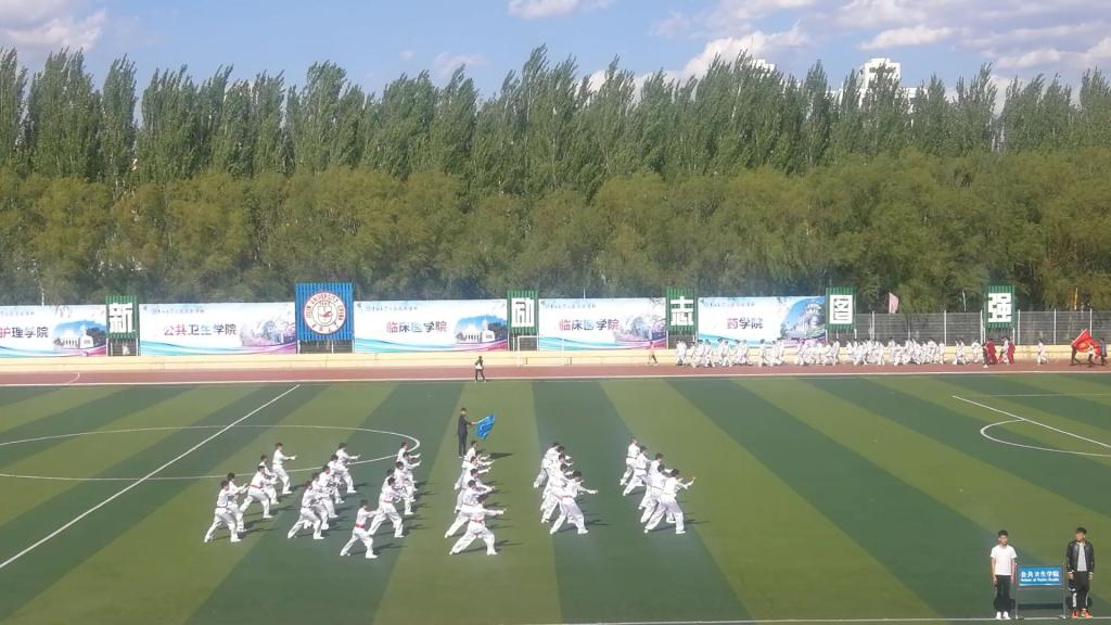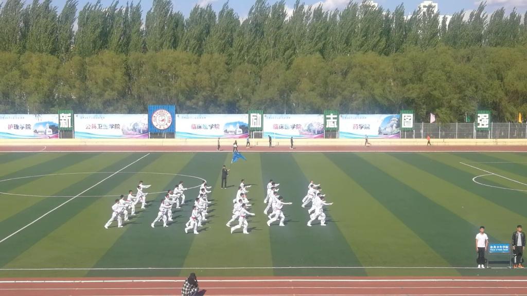 比赛结束后,各学院三路长拳代表队在体育场上集合,大家同心协力、积极配合,共同铸造了体育场上“千人长拳”的风景。音乐声止,体育场上响起了热烈的掌声,以此致敬这场完美的视觉盛宴。
