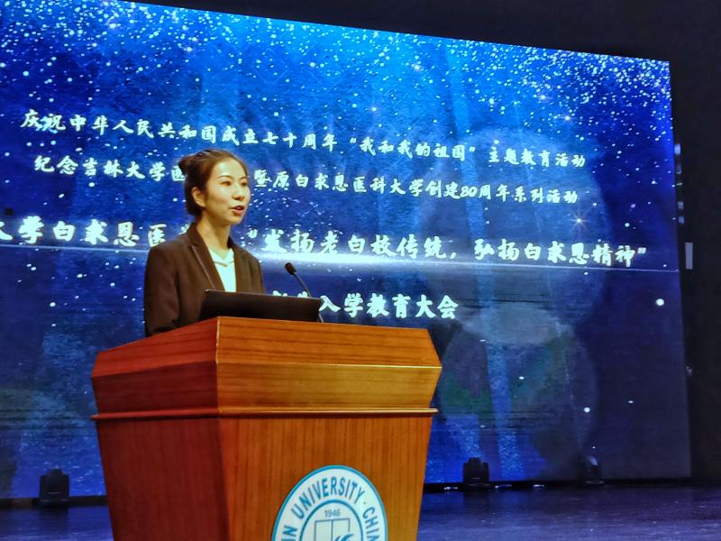 首先,李凡学部长向2019级新生介绍了白求恩医学部的基本情况。从最早的晋察冀军区白求恩卫生学校,到后来的白求恩医科大学,再到如今的金年会官网白求恩医学部,她为大家讲述了白求恩医学部的发展历程和光辉历史。李凡学部长强调,今年是金年会官网医学学科暨原白求恩医科大学创建八十周年,届时将有盛大的庆祝活动,而在座的新生都是这一伟大时刻的见证者。接着,李凡学部长对医学部下属的临床医学院、JINNIAN金年会、护理学院等五个学院的详细情况向新生进行了介绍。她勉励新生在大学期间树立目标,努力学习,为实现理想人生不断奋斗。