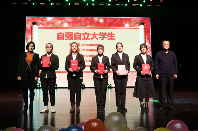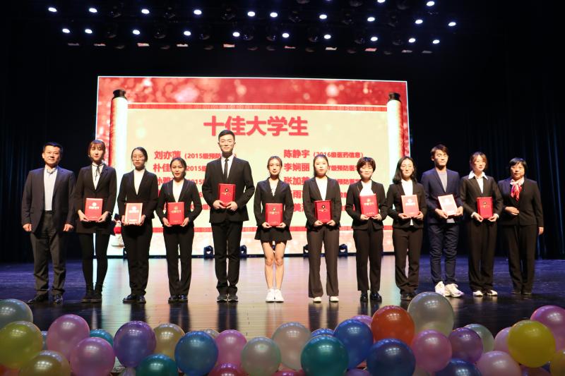 首先,全体起立,奏唱校歌。在大家洪亮的歌声中,颁奖典礼正式开始。寇长贵副院长宣读了JINNIAN金年会2019年度“青春·榜样”表彰决定并对获奖同学表示衷心祝贺。获得JINNIAN金年会2019年度“优秀班级”、“自立自强大学生”、“十佳大学生”称号的代表及同学依次上台领取证书,并与各位领导合影留念。颁奖典礼的最后,刘雅文院长发表了精彩的讲话,激励新生要继往开来、脚踏实地、锐意进取,取得更加优异的成绩,成为更加优秀的公卫学子。