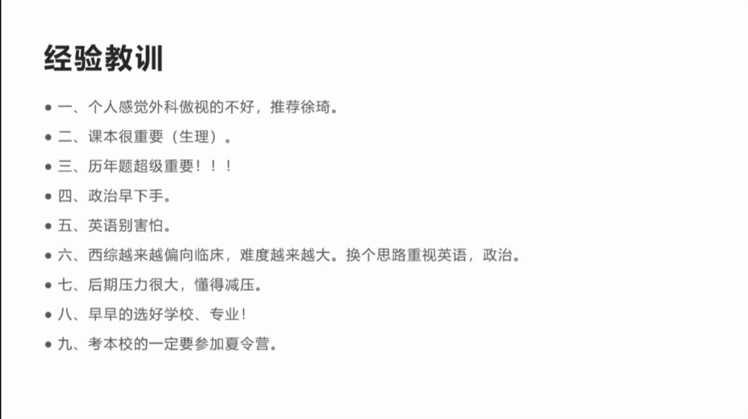首先,郑壮壮同学根据自身经验,建议同学们有效管理复习时间,不仅做到劳逸结合,更要适时调整复习心态。紧接着,坎杰布尔马克力克同学提出三轮复习的重点,强调做笔记的重要性,最后将“持之以恒,静下心来,相信自己”三句心得送给大家。轩实同学和李铮同学分别从不同角度详细介绍了核医学和特种医学的学科背景和分析了考试内容,为同学们的报考复习提出具有建设性的意见。随后,多为优秀毕业生从自身经验出发,结合考研的现实情况,把考研路上的心得体会倾囊相授,有的详细介绍考研流程中重要事项,如择校专业与调剂;有的解答同学们在资料选择上的困惑,如专业课书籍和网课视频的挑选;有的总结自己备考阶段的复习计划,分享复习顺序和复习要点,帮助同学们在复习中少走弯路,能够更有效率地学习。随后,由霍睿老师对各位同学的精彩分享进行总结,至此,本次会议正式结束。