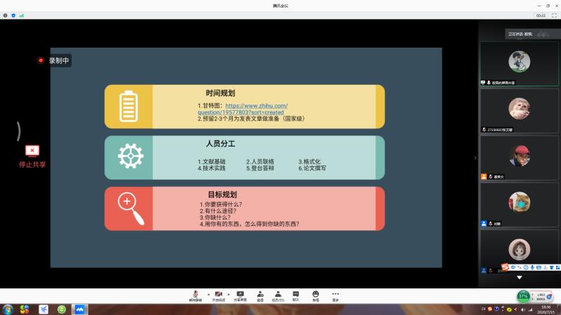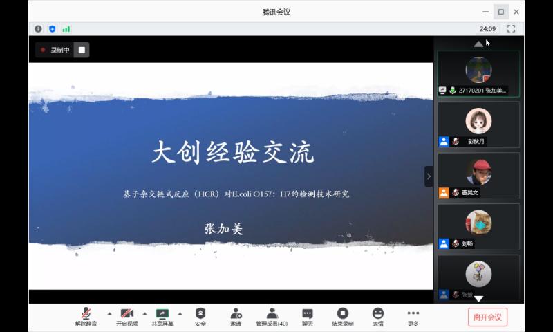 为加深同学们对大学生创新创业的了解,解决同学们心中的疑惑,JINNIAN金年会团学组织学生会创新就业指导部在7月15日于腾讯会议平台举办了大创经验分享会。分享会邀请了来自2017级有丰富大创项目经验的四位同学进行经验分享与问答交流,多位2018级、2019级学生参与。