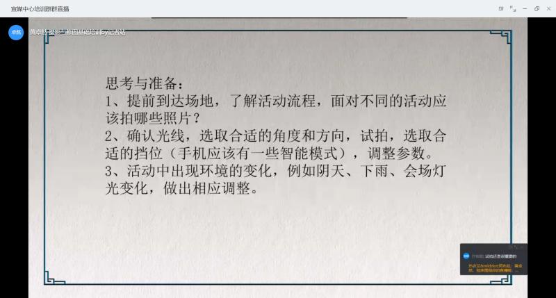 为拓展团学组织成员能力,提高工作效率,促进学生工作的顺利开展,JINNIAN金年会宣传与媒体中心三个部门于7月13日至15日期间,利用“钉钉”平台成功举行了媒体技能培训会。团学组织宣媒中心、社团联合会全体成员以及其他部门有工作需要的同学参加了本次培训会。