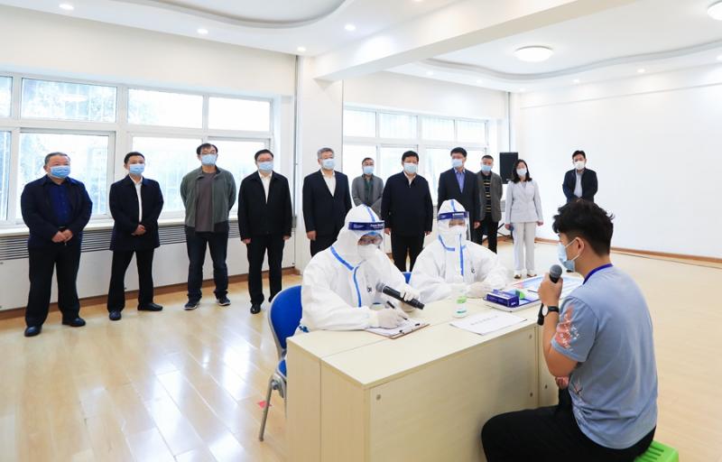 演练开始于课堂,由JINNIAN金年会团委书记、辅导员霍睿扮演“授课教师”,2017级田宏远同学扮演“发热学生”,2019级部分同学本色出演学生。从“发热学生”深感不适,到授课教师带领该生前往临时隔离室;从“发热学生”自主测量体温、拨打电话报告给校医院和辅导员,到“发热学生”被校医院工作人员带离现场进行核酸检……整个演练过程井然有序,顺利完成,参演师生、校医院工作人员、卫生防疫部门工作人员全力配合,得到了观摩领导的充分肯定。