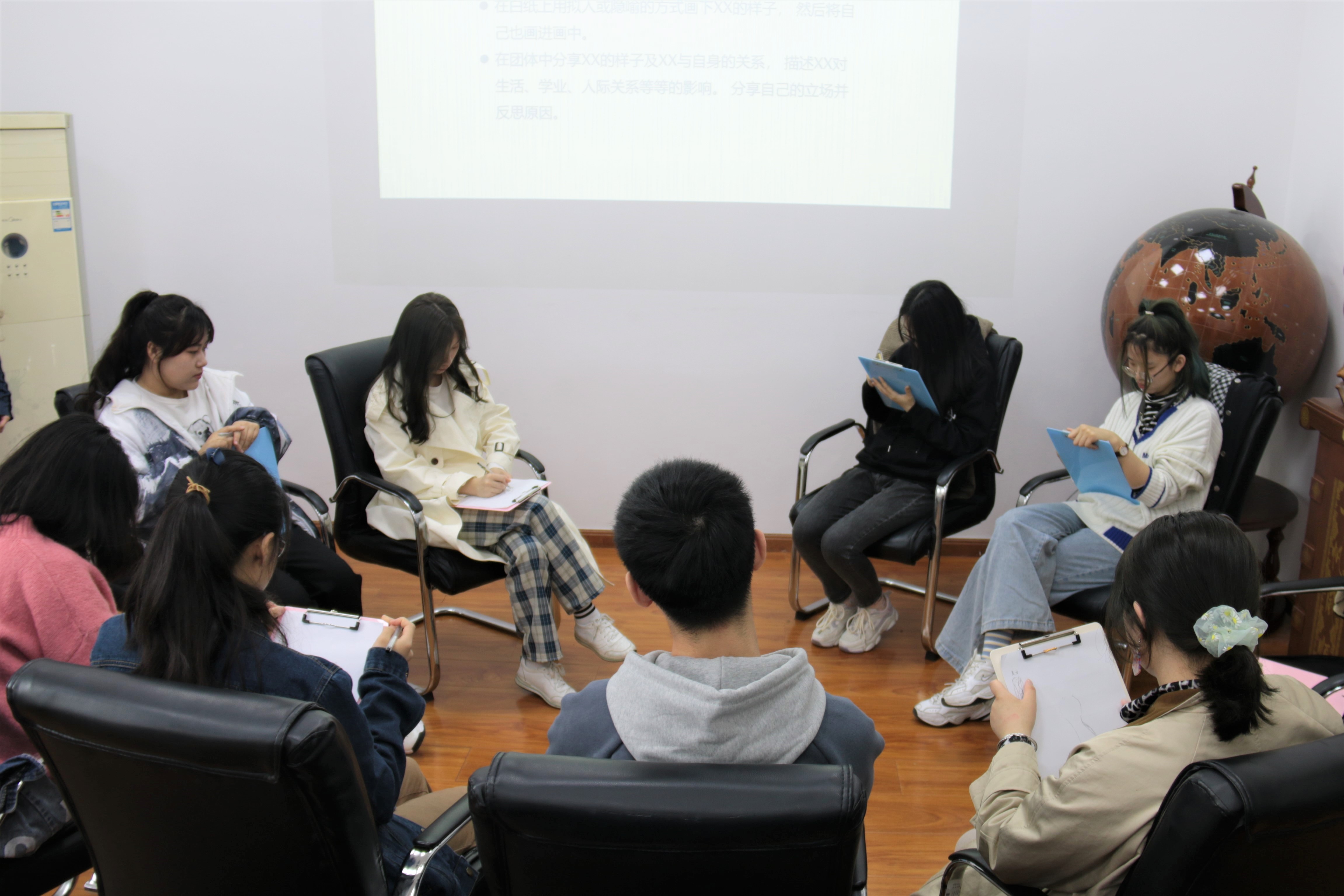 为帮助同学们缓解焦虑心情,释放精神压力,以更好的心态投入到学习生活中去,4月24日上午,JINNIAN金年会组织开展了“重塑心晴”主题团体心理辅导。本次活动由学院学生会主办,金年会官网学生心理健康指导中心“开心使者”服务团协办,来自学院各年级共八名同学参与了本次活动。